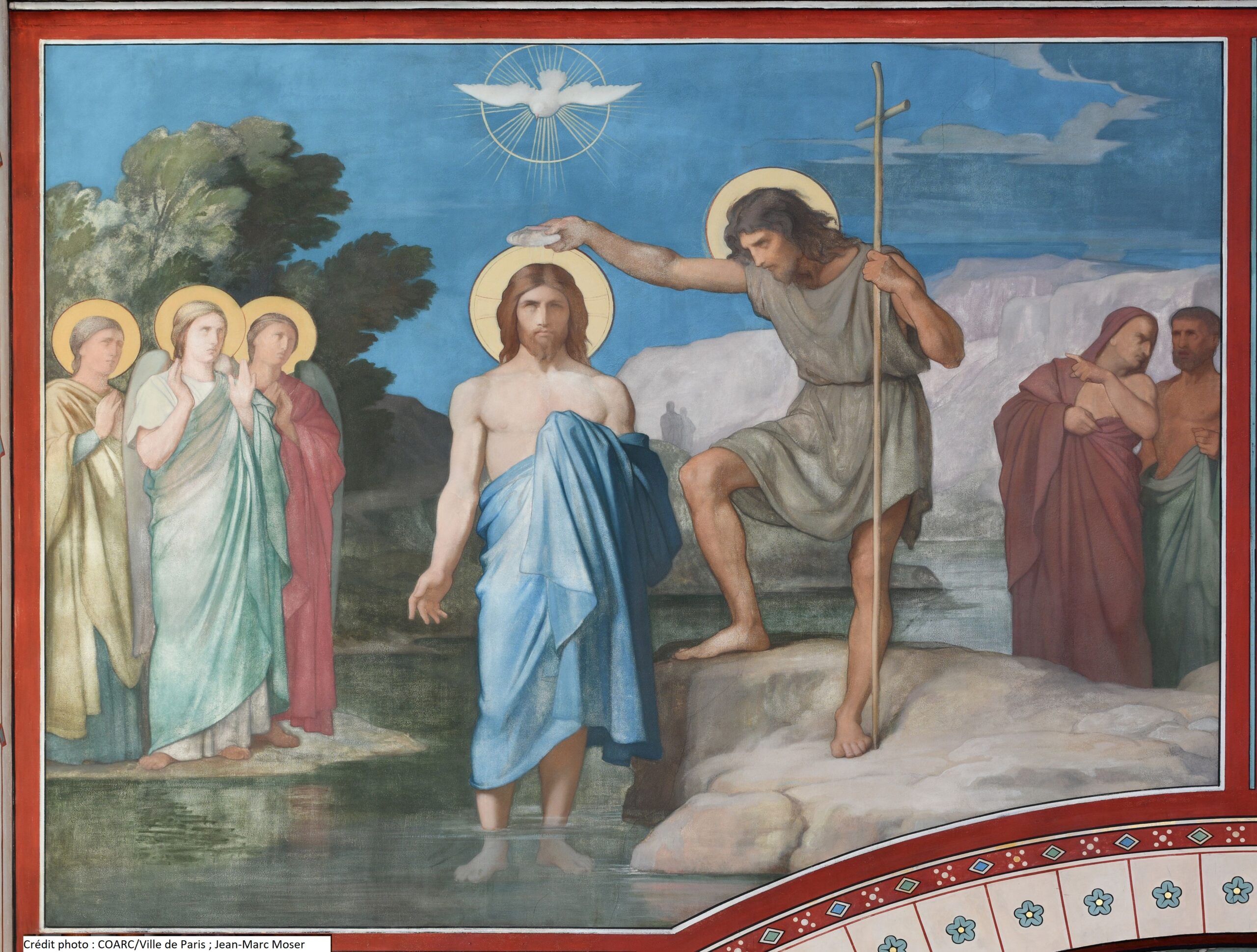 Alors paraĂ®t JĂ©sus. Il Ă©tait venu de GalilĂ©e jusqu’au Jourdain auprès de Jean, pour ĂŞtre baptisĂ© par lui. Jean voulait l’en empĂŞcher et disait : “C’est moi qui ai besoin d’être baptisĂ© par toi, et c’est toi qui viens Ă moi !” Mais JĂ©sus lui rĂ©pondit : “Laisse faire pour le moment, car il convient que nous accomplissions ainsi toute justice.” Alors Jean le laisse faire. Dès que JĂ©sus fut baptisĂ©, il remonta de l’eau, et voici que les cieux s’ouvrirent : il vit l’Esprit de Dieu descendre comme une colombe et venir sur lui. Et des cieux, une voix disait : “Celui-ci est mon Fils bien-aimĂ©, en qui je trouve ma joie.” (Évangile de Matthieu, 3, 13-17)