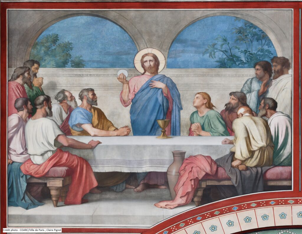 Puis, ayant pris du pain et rendu grâce, il le rompit et le leur donna, en disant : “Ceci est mon corps, donnĂ© pour vous. Faites cela en mĂ©moire de moi.” Et pour la coupe, après le repas, il fit de mĂŞme, en disant : “Cette coupe est la nouvelle Alliance en mon sang rĂ©pandu pour vous.” (Évangile de Luc, 22, 19-20)