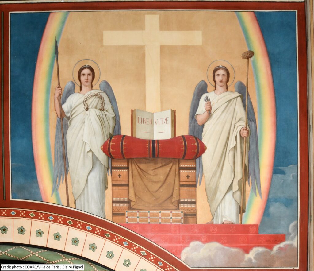 Fresque un peu complexe synthĂ©tisant l’Ancien et le Nouveau Testament. Ecoutez le commentaire du Père Florent pour bien comprendre…
